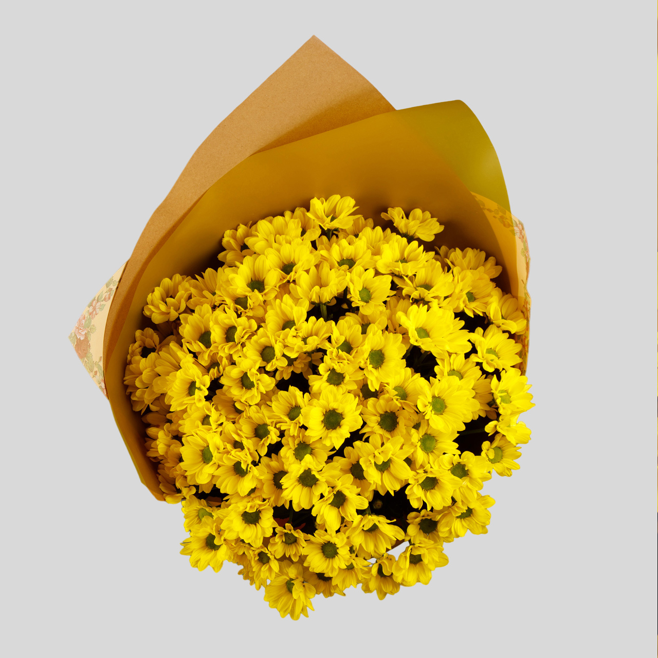 Букет из 15 желтых хризантем, благодаря их пышным бутонам и яркому цвету, произведет чудесное впечатление. Этот букет станет прекрасным подарком любой особе, ведь каждая хризантема, как маленькое солнышко, наполнит день радостью и позитивом! Обратите внимание на стильную упаковку, которая дополнит впечатление от букета!